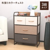 木目と布地がおしゃれでシンプルな布張りカラーチェスト、3段4杯タイプです。